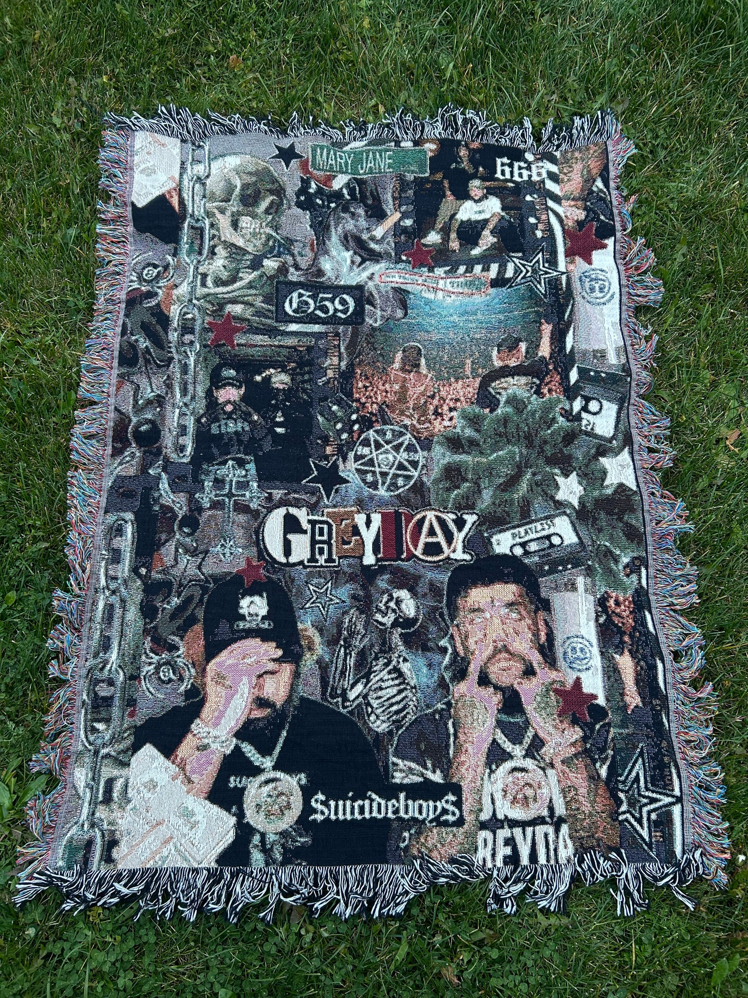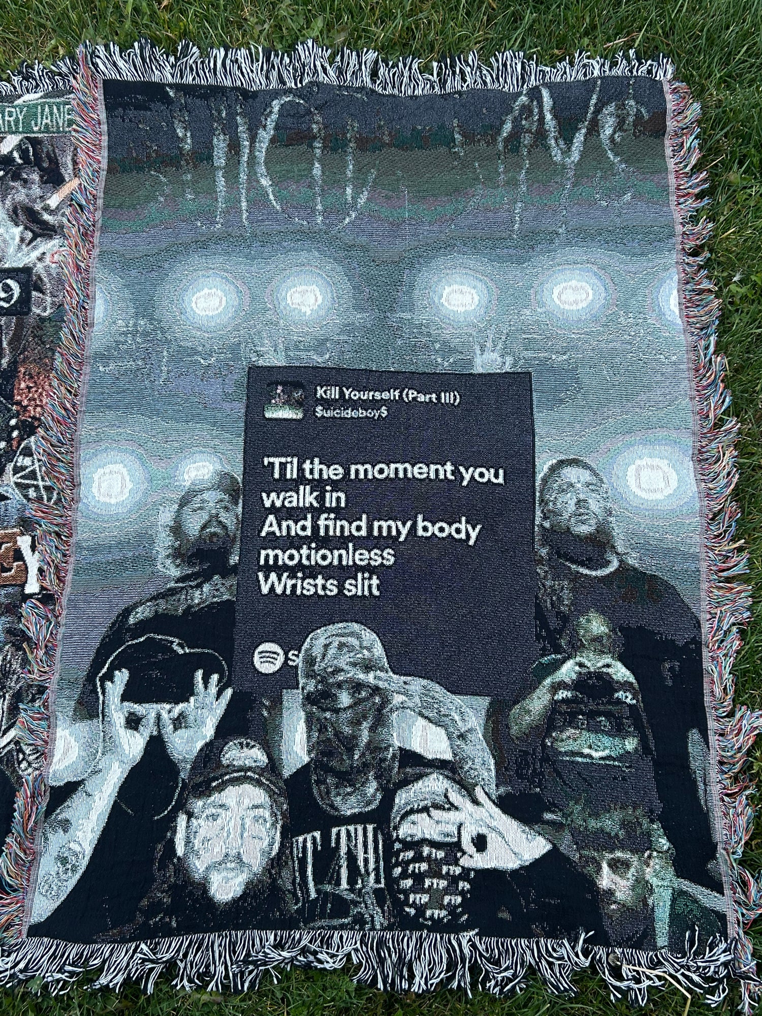 “Holy f*ck these are insane. I bought it expecting a regular blanket and this thing is HEAVY. The weave, the texture, the whole vibe feels straight out of a $uicideboy$ show. If you’re into G59, dark rooms, underground aesthetics… bro this is literally perfect. I threw it above my bed and it transformed the whole space. Looks expensive as hell.”